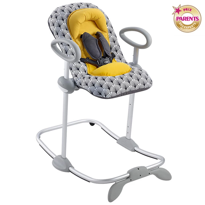 Le transat Up & Down III est équipé d’un système de bascule avec frein intégré : il s’agit simplement de rabattre la cale du transat pour permettre son balancement. Pour plus de sécurité, le transat est équipé d’un harnais de maintien 5 points.