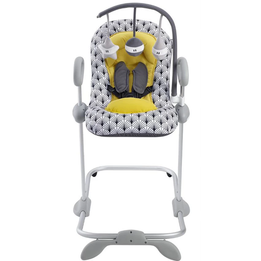 Vous avez la possibilité de rajouter une arche de jeux (vendue séparément) pour amuser votre enfant lorsque vous êtes occupés. Enlevez la poignée et insérez l’arche en positionnant l’articulation vers l’intérieur du transat.