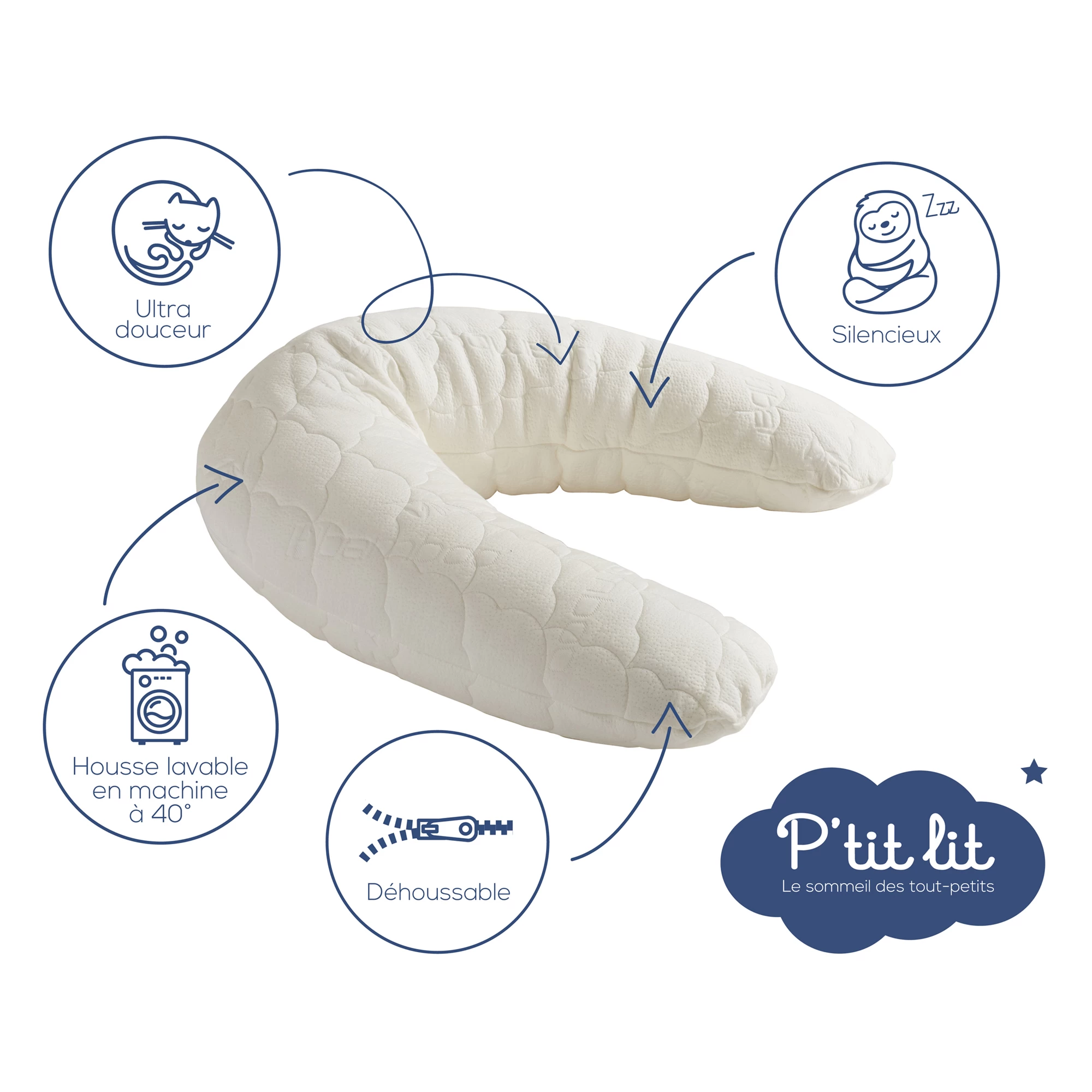 - Coussin d’allaitement non traité avec housse en viscose absorbante, douce et soyeuse. Pour un sommeil doux et serein.