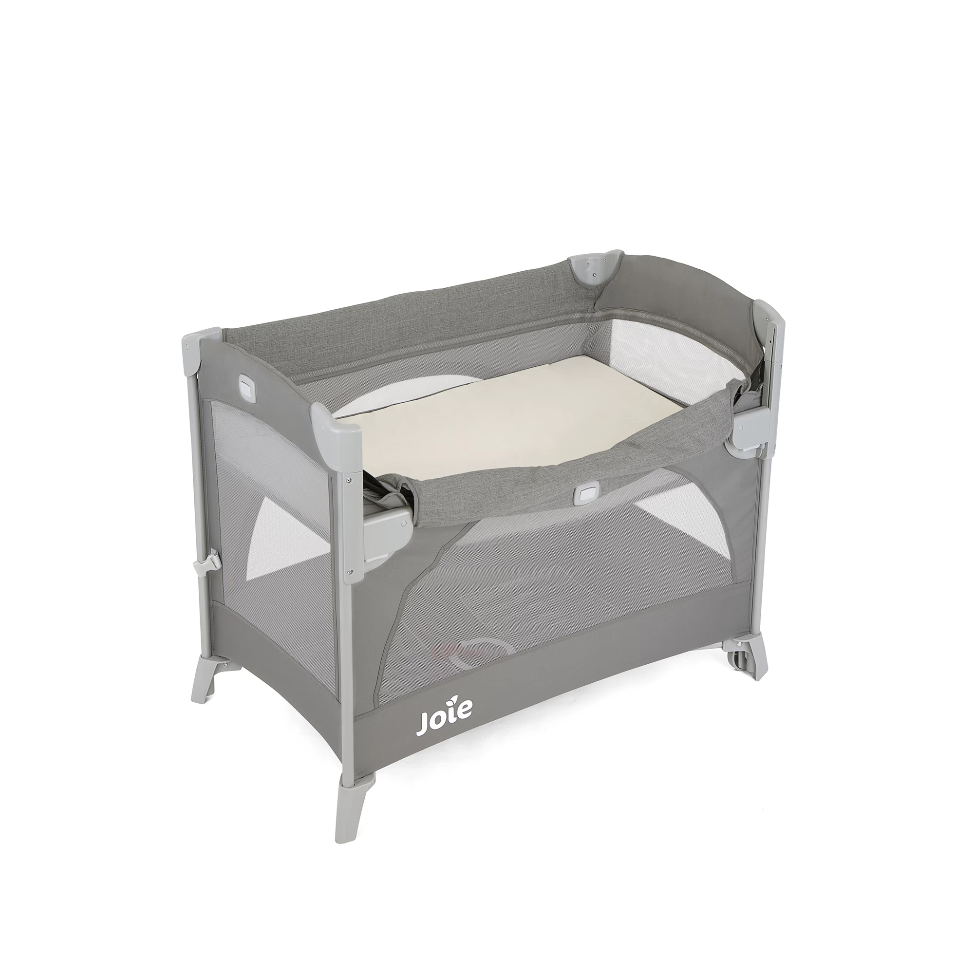 - Deux roues intégrées permettent de déplacer facilement ce lit de voyage d’un espace à l’autre