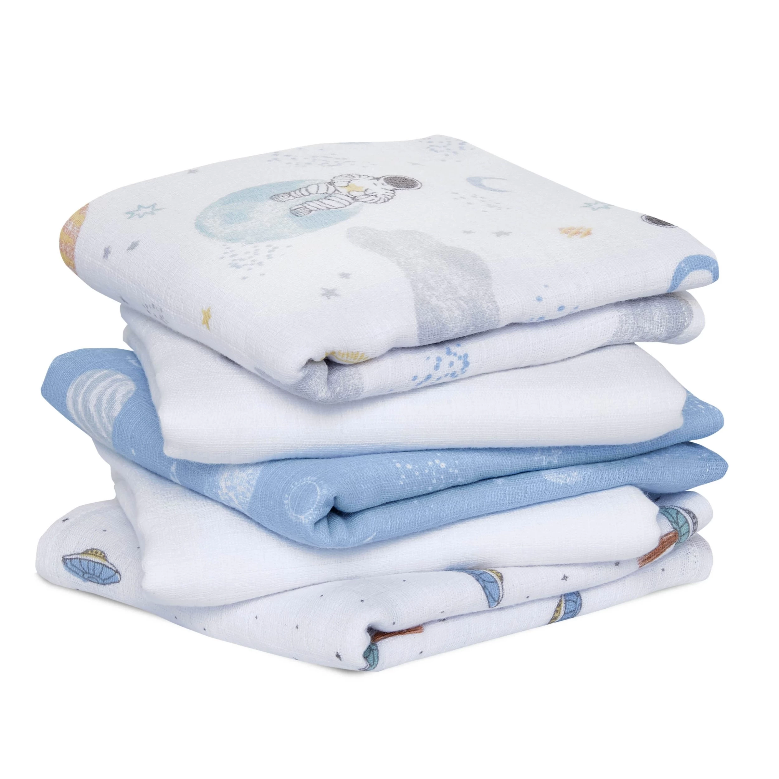 Lot de 5 langes carrés en mousseline 100% coton, 60×60 cm. Indispensables, ces langes en coton deviendront l’accessoire incontournable de votre sac à langer, assez petits pour être emmenés et utilisés partout : bavoir, doudou lange, protection de siège auto, couverture d’emmaillotage pour changer bébé et bien plus encore…