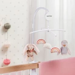 Cette arche de jeux se compose de trois peluches suspendues qui émettent des sons amusants. Ces jolis jouets sont réversibles et sont fabriqués en tissus différents afin de stimuler les sens de bébé.