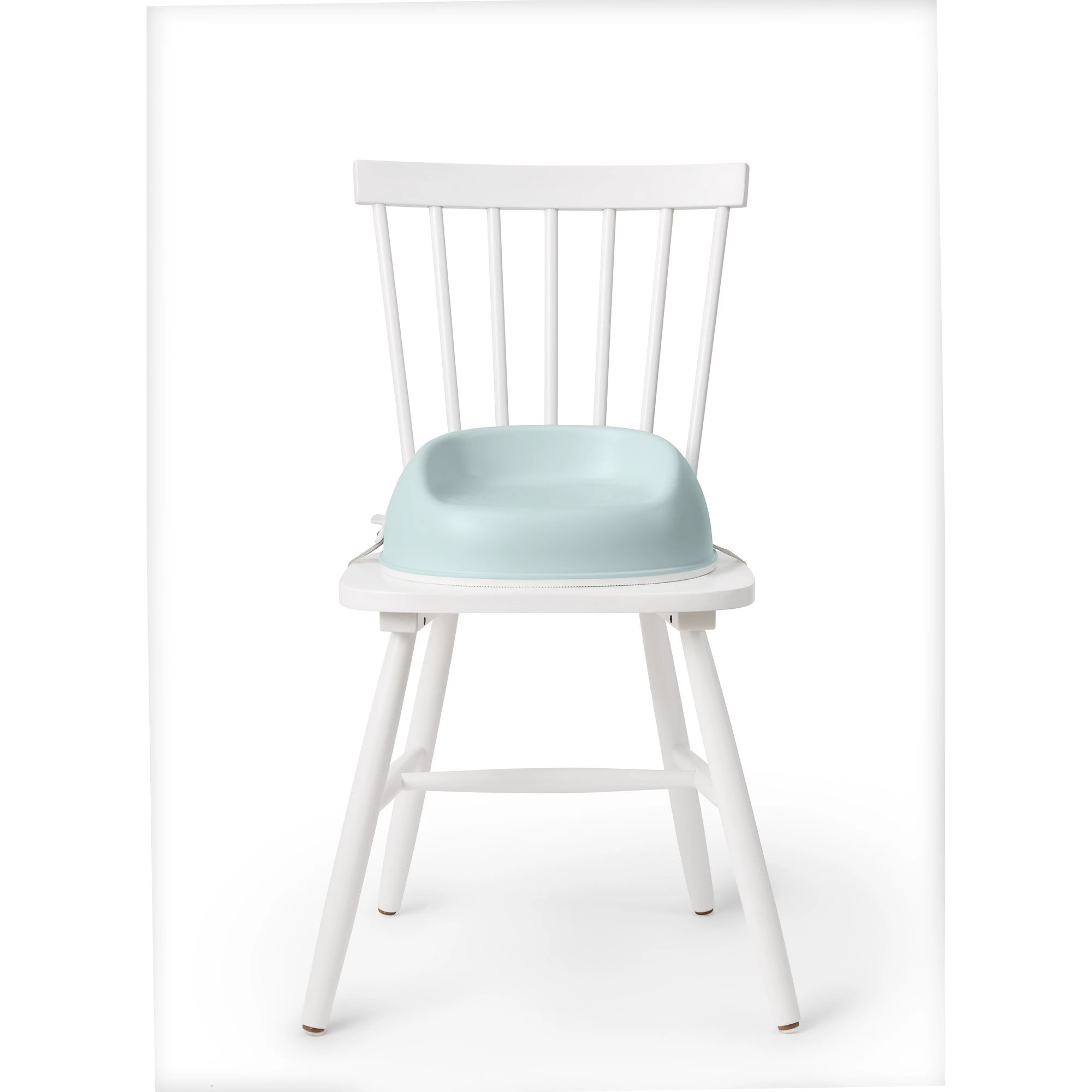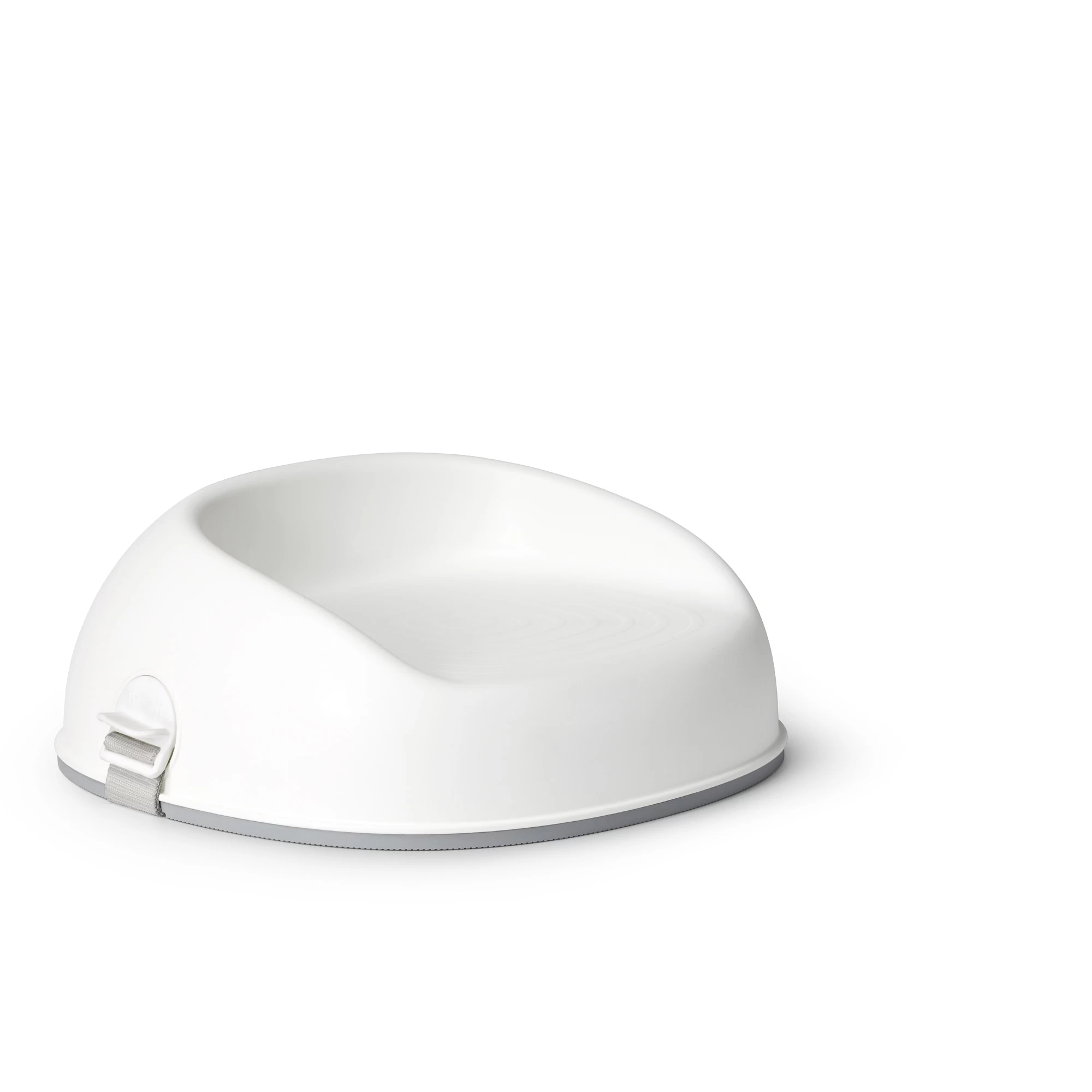 La base caoutchoutée sous le rehausseur le maintient fermement sur la chaise.